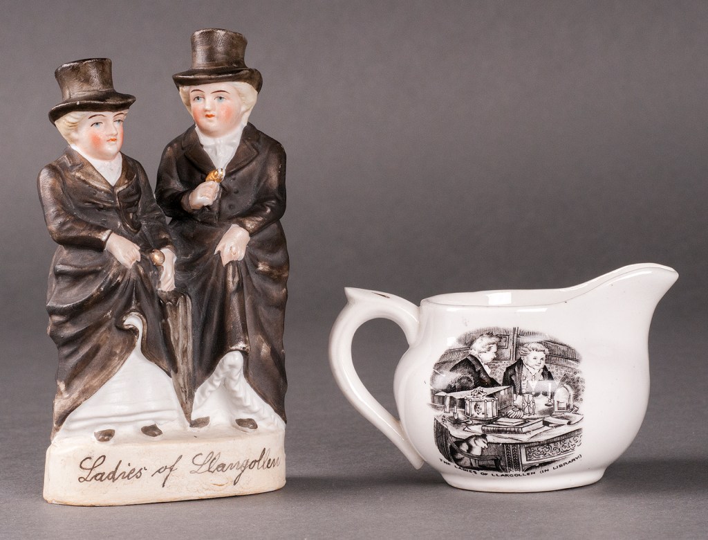 A remarkable part of queer history is also included in the exhibition. A creamer and figurine depict the Ladies of Llagollen, who were late eighteenth century aristocrats Eleanor Butler and Sarah Ponsonby. These two women abandoned their lives in Ireland to be together, moving to Wales, and understood themselves to be married, though same-sex marriage was not recognized by the government until 2014. They became important figures in the 19th century queer culture
