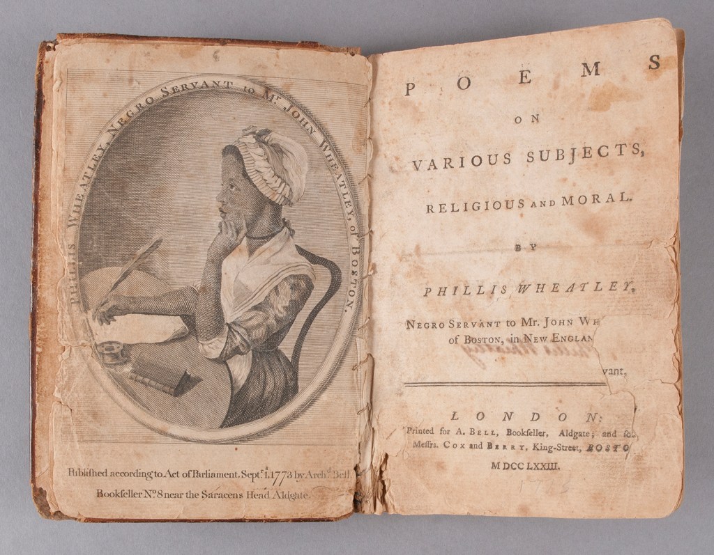 Wheatley, Phillis, Poems on Various Subjects, Religious and Moral, London: Printed for A. Bell, 1773, Lisa Unger Baskin Collection, Rubenstein Rare Book & Manuscript Library, Duke University. Accessed February 01, 2020, https://exhibits2.library.duke.edu/exhibits/show/baskin/item/4039